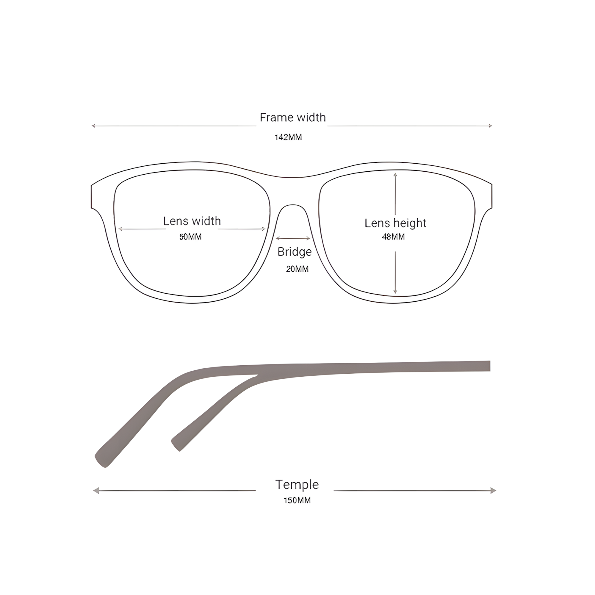 我们知道每个人的脸型都是独一无二的,所以我们为每款镜框提供了详细的尺寸信息。我们的镜框尺寸用三个连续的数字表示:镜片宽度、鼻梁宽度和镜腿长度,均以毫米为单位。